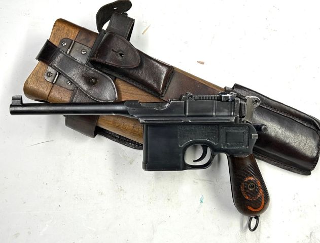 Calibro: 9mm Para/ 9×19 Brunitura originale in condizioni eccellenti monomatricola comprese le guancette, canna bella, calciolo-fondina originale, completo di giberna in cuoio Sportiva