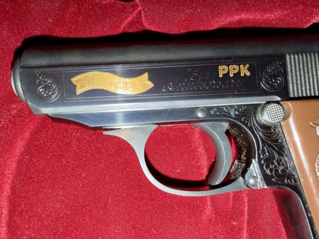 modello in serie limitata per il 75 anniversario con inserti in oro e meno di 50 colpi esplosi dotazione completa di scatola in legno caricatore aggiuntivo doppia serie di gualcente in legno e polimero utilenseria