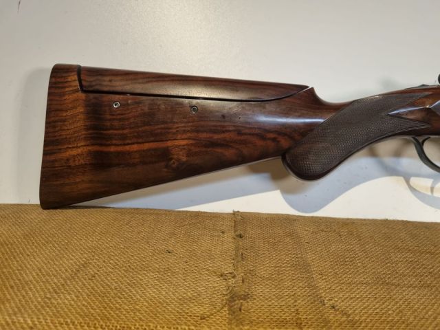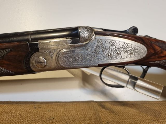 SOVRAPPOSTO CAL. 12/70 DEL 1969, MONOGRILLO, EJ, CANNE CM.71 FORATE 18,5 E 18,3 E STROZZATE +++/+ CON BV, PERFETTE E GIUSTE AL PESO, BELLA INCISIONE ROSE AND SCROLL, CHIUSURE PERFETTE, CALCIO ORIGINALE PRINCIPE DI GALLES E SECONDO CALCIO A PISTOLA CON GUANCIALE REGOLABILE. PERFETTO DI LEGNI E BRUNITURA.