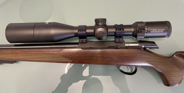 Tikka T1x Hunter .22 LR: acquistata metà 2023, canna da 20'', calcio in legno, caricatore 5 colpi, spaziatore LOP stampato in 3D, scatola e manuale originale. Documenti vendita completi.