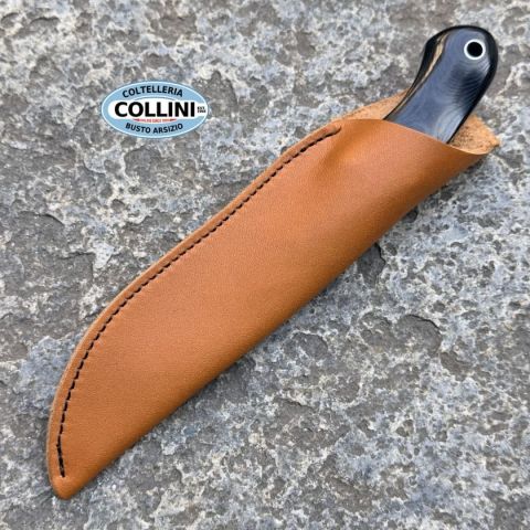Mcusta MC-23 Series – L’incontro tra artigianato giapponese e design americano La serie MC-23 rappresenta la prima collaborazione tra il marchio giapponese Mcusta e il rinomato coltellinaio americano Mike Irie, celebre dal 1991 per i suoi coltelli da caccia compatti, eleganti e altamente funzionali. Da questa unione nasce una linea che reinterpreta lo stile classico delle collezioni “Sport 100”, “200” e “300”, mantenendone lo spirito originale e arricchendolo con la precisione costruttiva giapponese. Realizzato nella città di Seki, cuore della tradizione coltellinaia nipponica, il MC-23 è un coltello a lama fissa che unisce estetica raffinata e praticità d’uso. La lama in acciaio laminato VG-10 e damasco, con finitura grigio opaco e texture martellata (tsuchime), offre resistenza, prestazioni elevate e un impatto visivo distintivo. Il dorso presenta un jimping fine per garantire maggiore controllo durante l’utilizzo. L’impugnatura in Black Linen Micarta sagomata, impreziosita da elegan