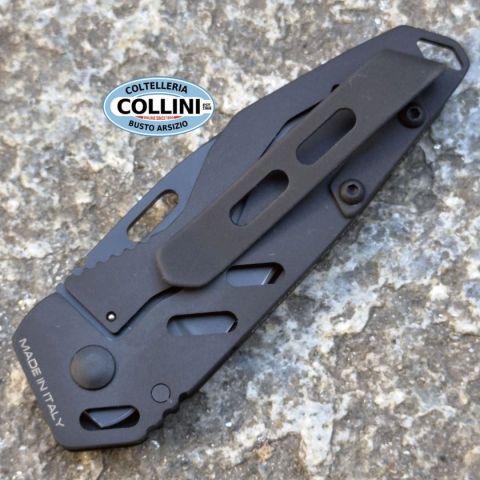 Small Blade. Giant Power Per chi vive la mentalità always ready: quando compattezza e prestazioni si incontrano, nasce uno strumento che non delude. ANT SP è progettato per operare ovunque, con la massima discrezione. Punta spear point, costruzione rinforzata, presa sicura. Compatto, rapido, affidabile nel contatto ravvicinato. Un attrezzo pensato per chi cerca funzionalità reali, non un semplice EDC mascherato da qualcosa di più. Se non misuri i centimetri, ma la missione, allora sei nel posto giusto. Tipo di produzione: industrialePaese di produzione: ItaliaLama: acciaio inox N690Co a 58HRC con finitura DLCManicatura: acciaio inox ed alluminio anticorodal anodizzatoLunghezza lama: 46mm.Spessore della lama: 2.4mm.Lunghezza chiuso: 55mm.Lunghezza totale: 123mm.Peso: 42g.Sistema di blocco: Frame LockClip: amovibile, in acciaio inoxNote: fa parte della collezione "The Urban Beauty", lanciata il 09/12/2025